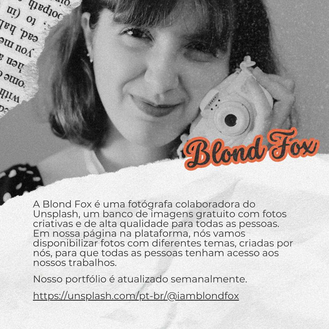 📣 A Blond Fox é uma fotógrafa colaboradora do Unsplash, um banco de imagens gratuito com fotos criativas e de alta qualidade para todas as pessoas.