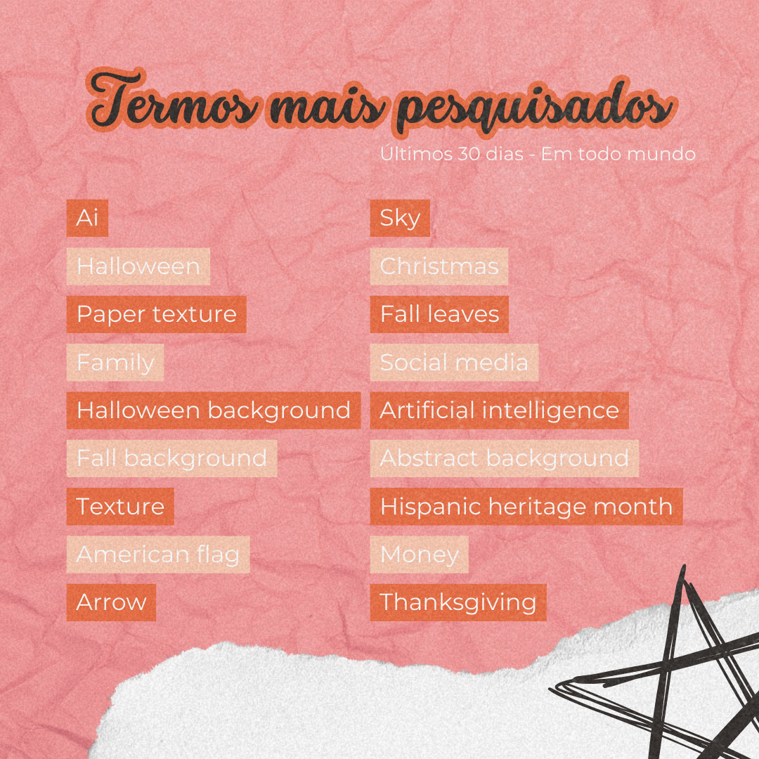 Vem com a gente que a gente te mostra os termos mais pesquisados durante os últimos 30 e 07 dias, de acordo com a ferramenta do Getty Images 'Visual Insights GPS'.